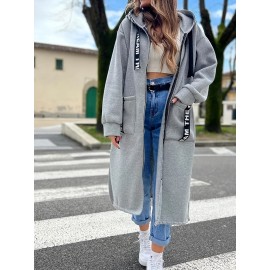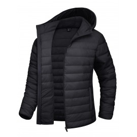 1pc Winter Fashion Hooded Casual Coat, 100% Polyester Solid Color Long Sleeve Non-Stretch Woven Jacket with Zipper, Hooded Collar, Regular Fit for Outdoor Leisure