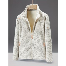 Women's Plus Size Casual Jacket - Warm, Solid Color with Pockets, Non-Stretch Polyester for Fall/Winter