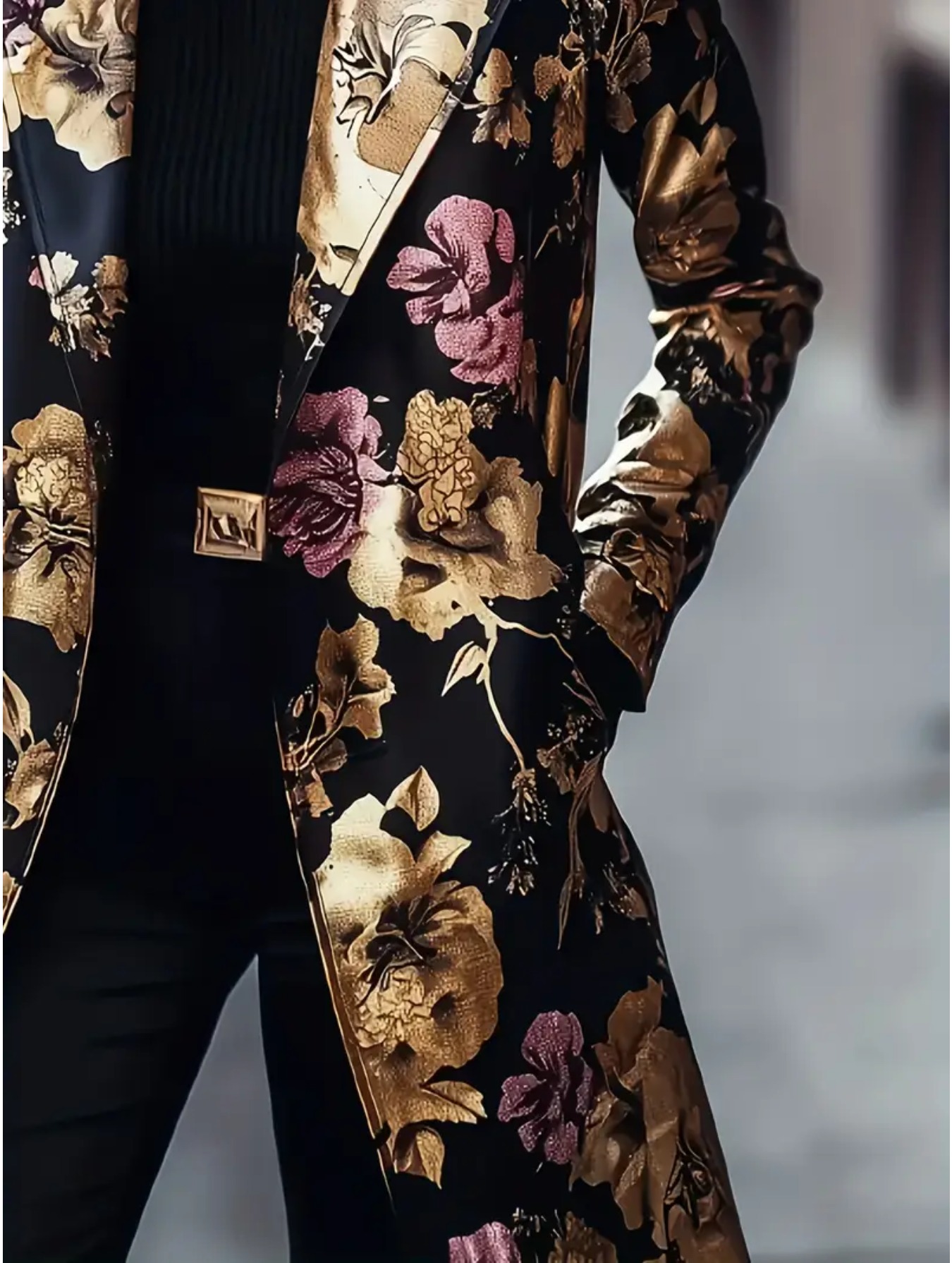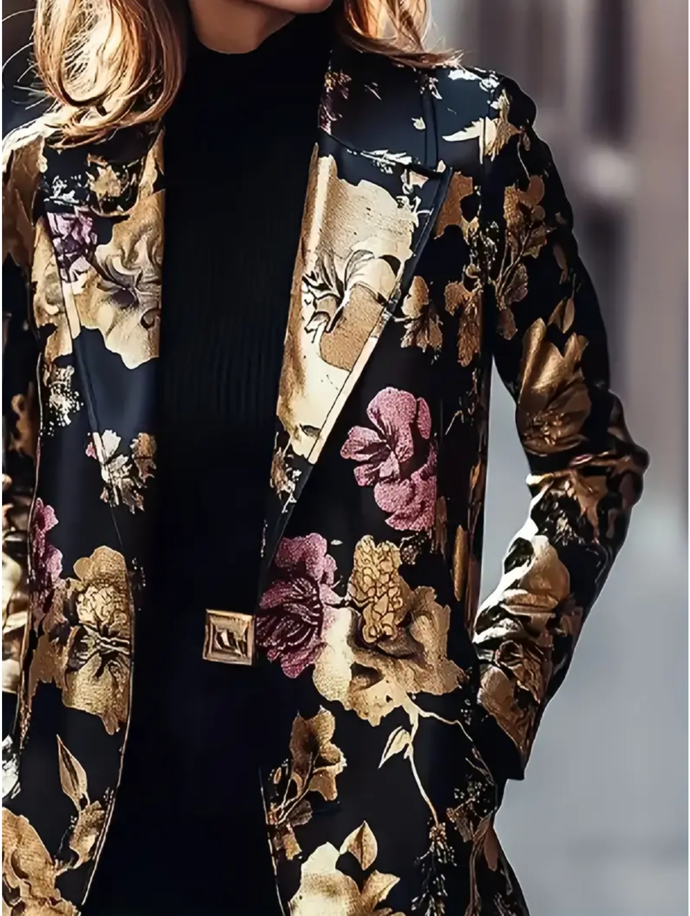 Plus Size, Women's & Burgundy Floral Blazer Jacket - Mid-Length Lapel Coat with Notch Collar, -Tone Pocket, Machine-Washable Winter Outerwear for, Weddings & Parties - Elegant Brown/Beige Trench Coat
